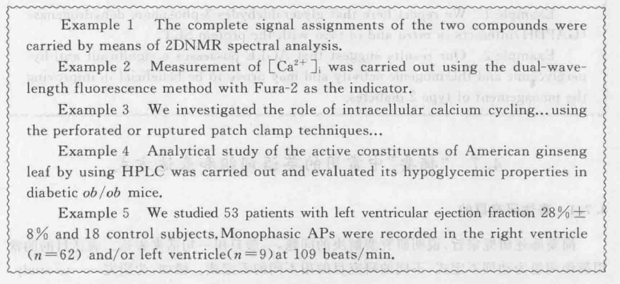 摘要中的研究方法是指简明扼要地介绍研究途径、采用的材料、模型、实验范围及手段等。在摘要中,研究方法的介绍必须极为简要。在大部分情况下,只需说明方法的名称,不可多写。摘要中常用的英语词组有:“by means of”、“by using”、“by the use of”、“using...as..”等。