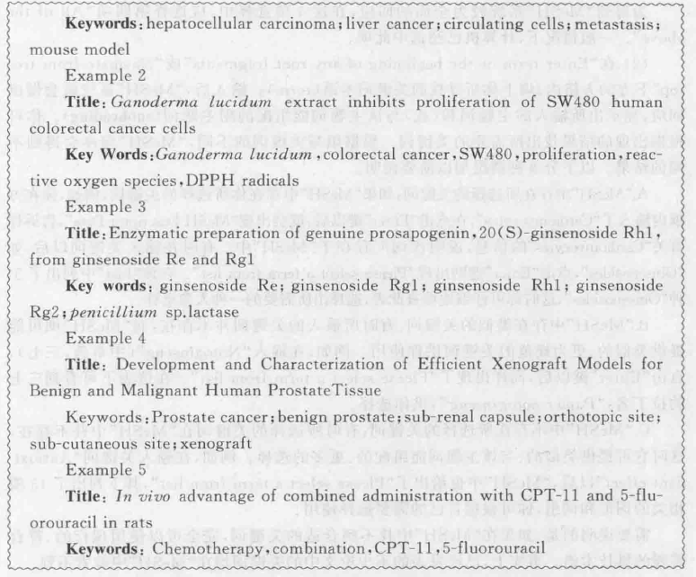 下面笔者选列了发表在不同的SCI杂志上几篇论文的题目及其提供的关键词,供初学者参考。