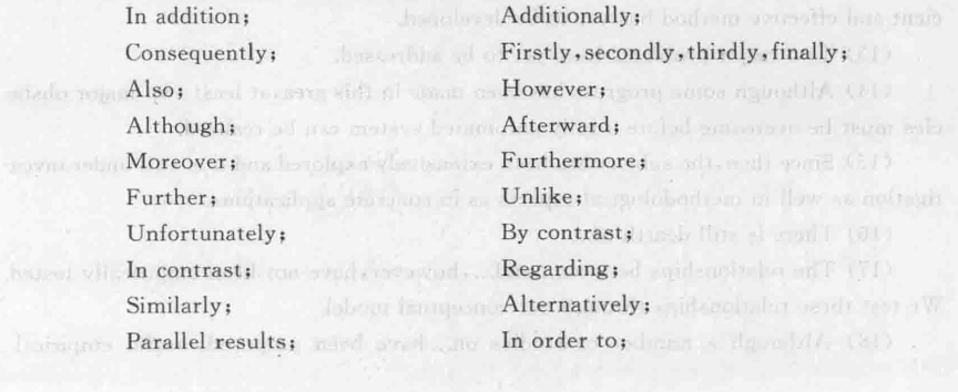 “引言”的逻辑性十分重要。一句话和另一句话之间要有连贯性和逻辑性。这里列录一些含义不同的连贯词和转折词供使用时参考。