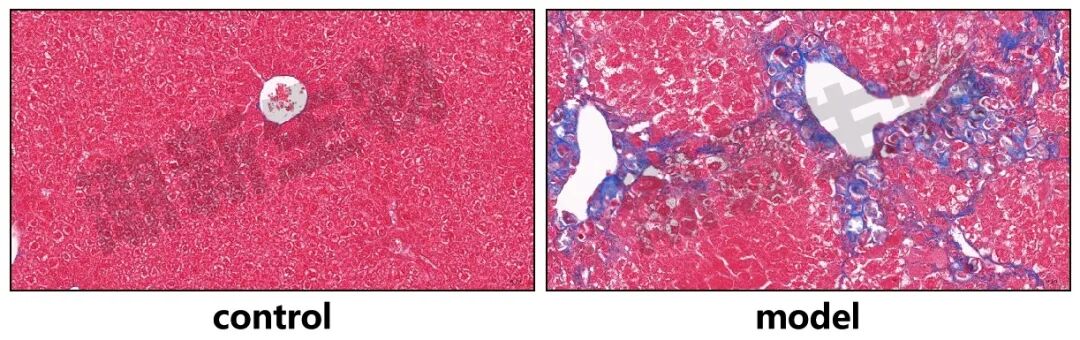 硫代乙酰胺(TAA)诱导8周后取材,肝脏Masson染色结果。