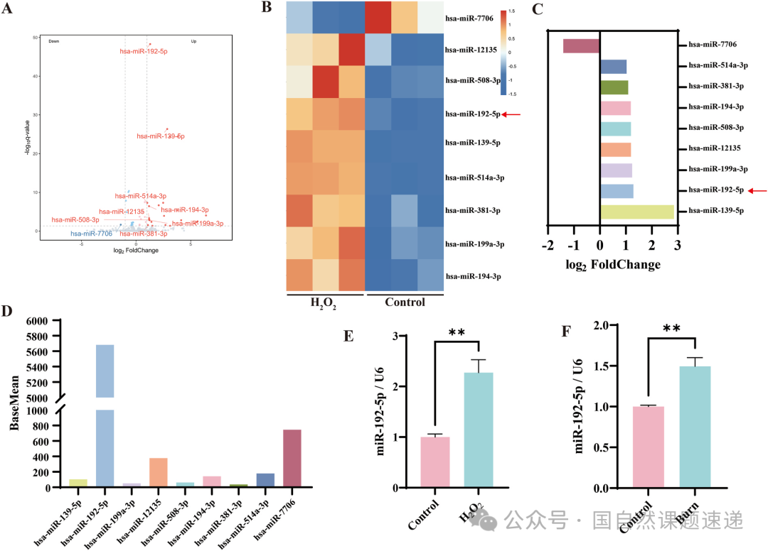 在绝大多数烧伤愈合的讨论里,人们往往把注意力放在炎症强度、感染控制、血流供应以及基质再生这些宏观因素上,但这篇 2025 年的新研究把焦点放到一个常被忽略的层面——miRNA 的变化。作者在烧伤模型中系统筛查发现,miR-192-5p 在创缘组织中显著上调,而且它的变化幅度和创面修复速度之间存在非常紧密的关联。更关键的是,当 miR-192-5p 过量存在时,上皮细胞的增殖和迁移能力都被压了下去,让创面从一开始就处在一种“动力不足”的状态。