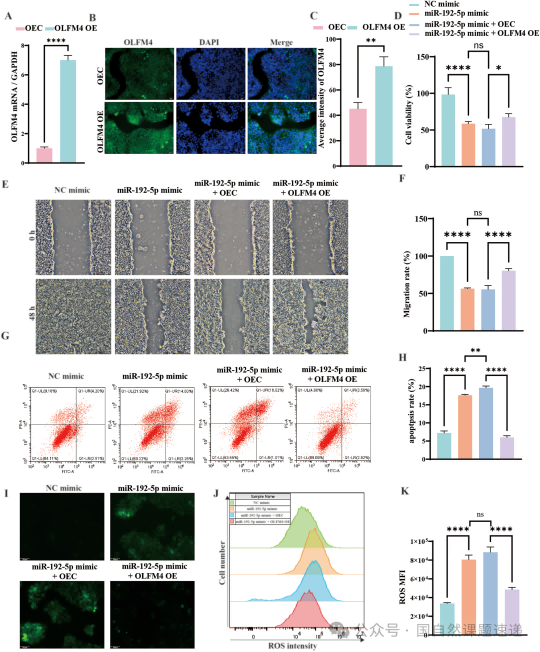 Fig. 6|OLFM4 过表达可抵消 miR-192-5p 过表达造成的损伤