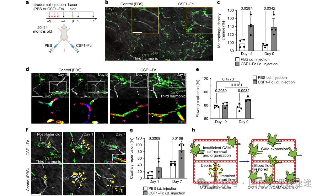干预验证:局部增强CSF1信号可改善老龄皮肤的再灌注与灌注稳定性