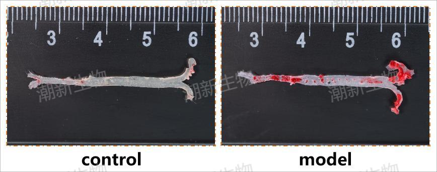 高脂高胆固醇饲料饲喂10周后取主动脉进行大体油红染色。