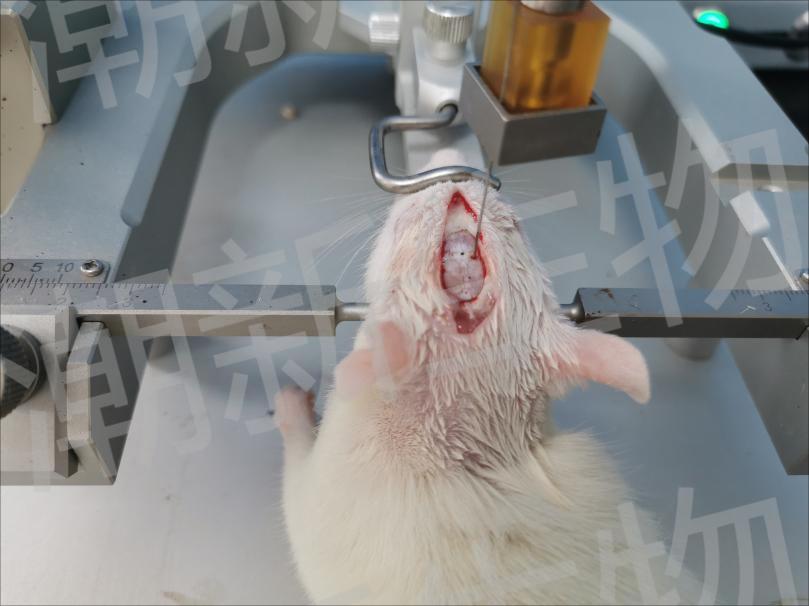 选取8周龄雄性SD大鼠,1%戊巴比妥钠(40mg/kg)腹腔注射麻醉动物,手术部位常规消毒。使用脑立体定位仪固定头部,取两耳中点并沿矢状线做长约1.5 cm纵行切口,分离皮下组织和筋膜,充分暴露颅骨前囟点。以前囟点为原点确定大鼠尾状核位置,使用颅钻在颅骨表面相应位置开一个直径约1mm的小孔,微量注射器针头从小孔插入尾状核,缓慢注入0.4 U胶原酶溶液,注射时间约5 min,注射完成留针10 min后缓慢退针,最后使用骨蜡封闭小孔。