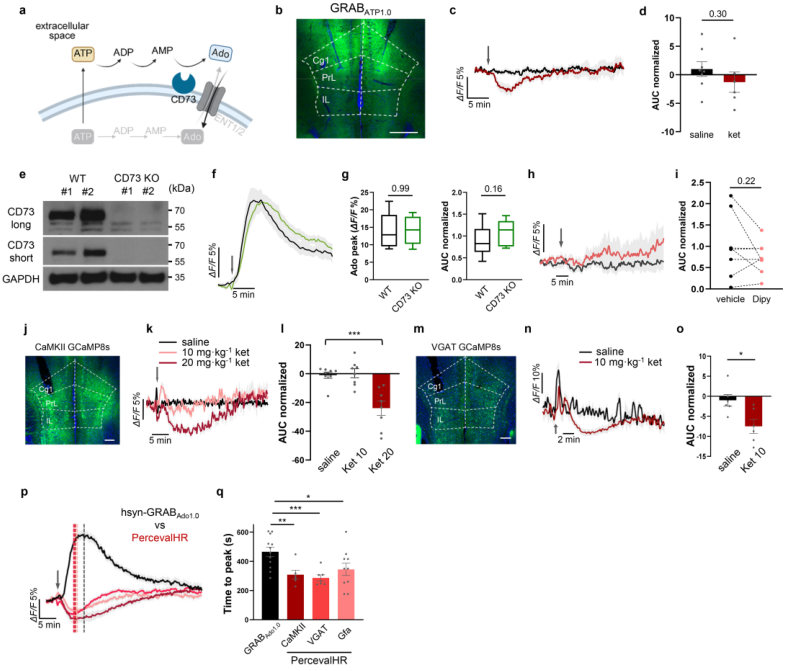 扩展数据图1|氯胺酮诱导腺苷信号的表征与验证