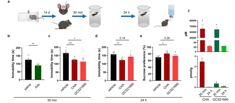 扩展数据图4|激活腺苷受体可产生抗抑郁样效应