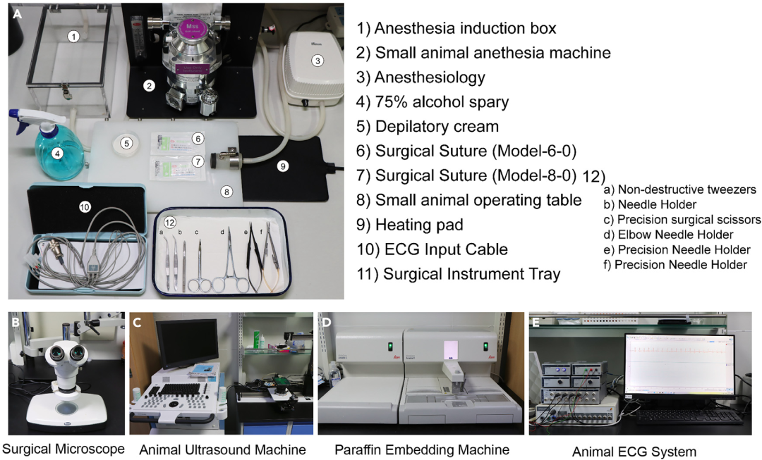 图1. 小鼠心肌梗死与心肌缺血再灌注损伤模型的设备搭建