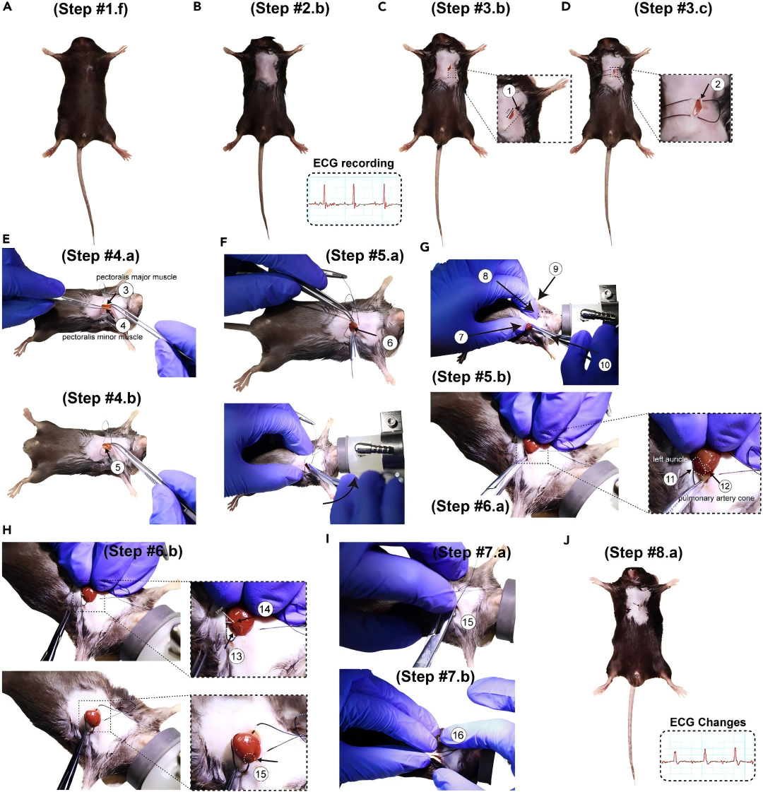 本方法用于建立小鼠心肌缺血再灌注损伤模型,以左前降支(LAD)可逆阻断模拟短暂缺血后再通。流程以异氟烷吸入麻醉、实时心电监测与体温维持为基础,通过缺血期心肌颜色改变及心电ST段变化进行过程质控,并在再灌注后按研究终点开展组织学与功能学评估。