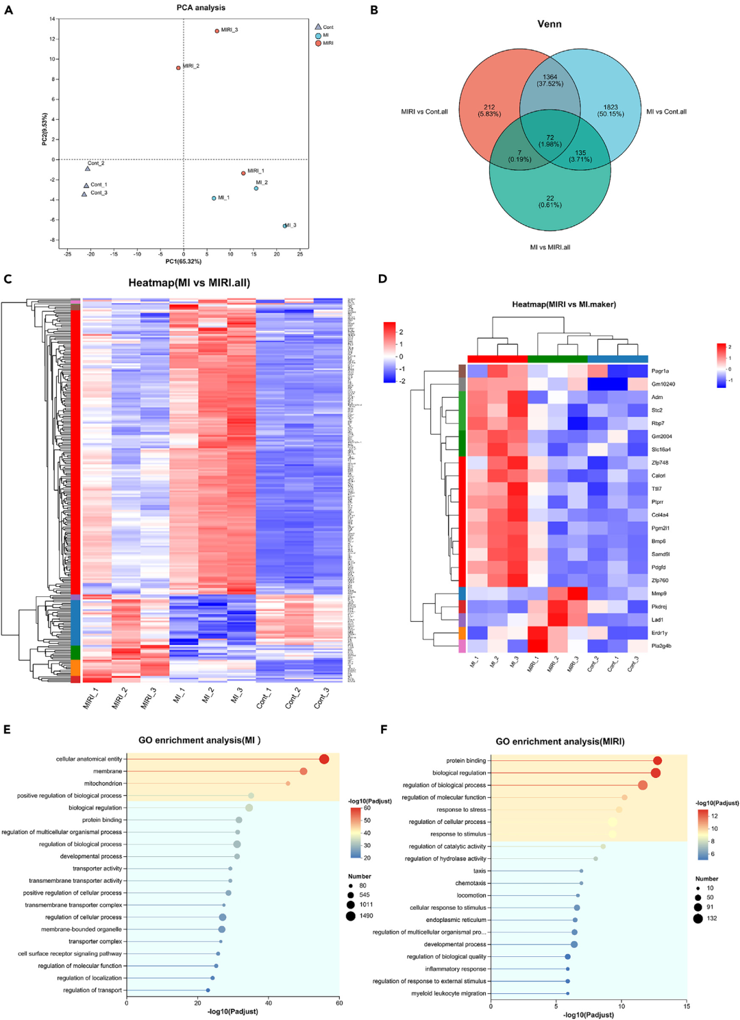 图4. RNA测序分析揭示MI与MIRI的基因表达特异性