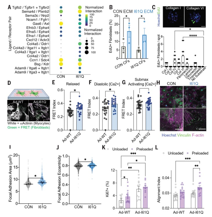 图1 细胞外基质-受体相互作用增强成纤维细胞的舒张期机械感知,并驱动其增殖。