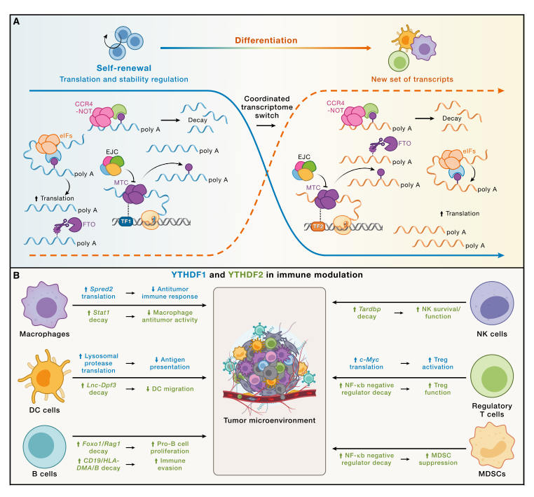 mRNA的m6A在肿瘤微环境中调控细胞自我更新、分化与免疫应答的作用